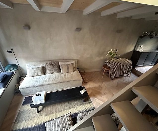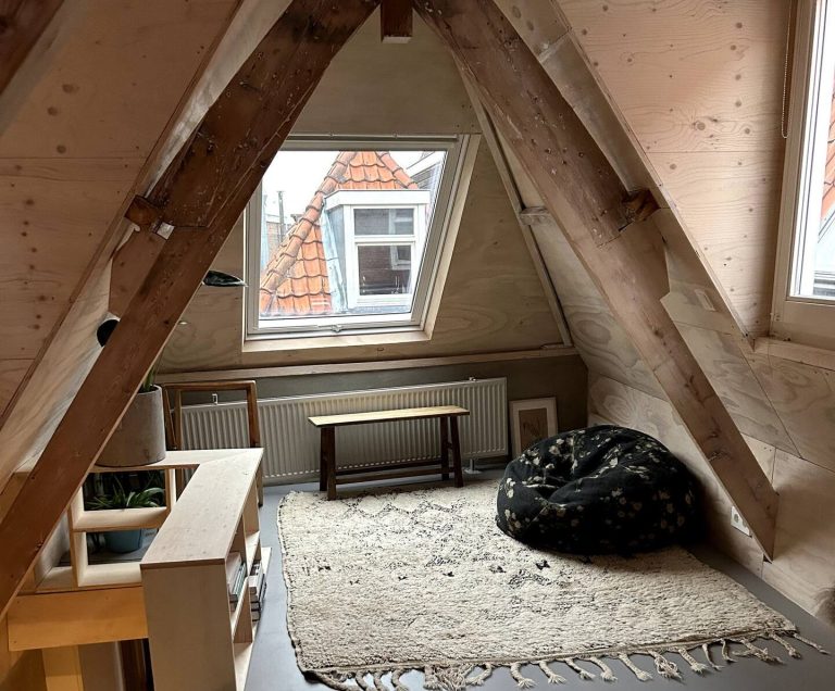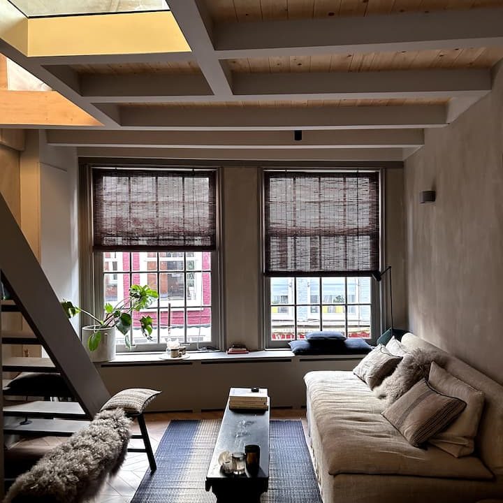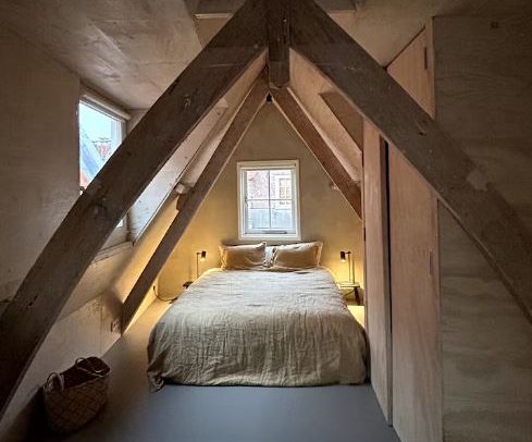 Die Wohnung befindet sich in einem für Haarlem typischen historischen Stadthaus direkt über einem Innendekorationsgeschäft, das nur Samstags geöffnet hat.