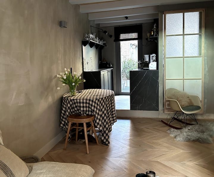 Diese zentral gelegene Unterkunft ist sehr stilvoll und geschmackvoll eingerichtet. Sie bietet Platz für 2 Personen (und 1 Kind ab 3 Jahre) und liegt direkt im Zentrum der Stadt im kleinen Viertel Vijfhoek, in einer der schönsten kleinen Einkaufsstraßen. Gegenüber befindet sich eine sehr schöne italienische Trattoria. Der Supermarkt ist um die Ecke. Parkplätze im Zentrum sind auf Anfrage verfügbar.